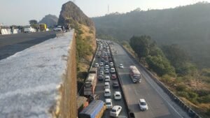 द्रुतगती महामार्गावर वाहनांची गर्दी