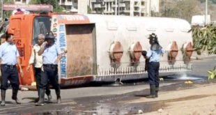 पुणे ः प्रतिनिधी पुण्यातील वारजे महामार्गावर पेट्रोल आणि डिझेल वाहून नेणारा टँकर उलटला असून या अपघातामुळे टँकरमधील तब्बल पाच हजाल लिटर पेट्रोल-डिझेल वाया गेले. टँकरमधील पेट्रोल आणि डिझेल रस्त्यावर वाहून गेले, अशी माहिती अग्निशमन विभागाकडून देण्यात आली. बुधवारी सकाळी साडेनऊ वाजण्याच्या सुमारास वारजे येथील महामार्गावर मुंबईकडून कात्रजच्या दिशेने जाणारा टँकर …