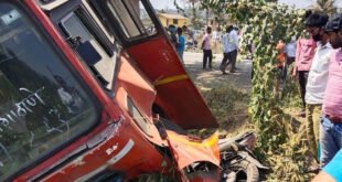 एसटीच्या धडकेत दुचाकीस्वार मृत्युमुखी, 11 प्रवासी जखमी पेण : प्रतिनिधी मुंबई-गोवा महामार्गावर पेण तालुक्यातील नवेगाव गावाजवळ एसटी बसने मोटारसायकलला धडक दिली. या अपघातात मोटारसायकलस्वार जागीच ठार झाला, तर एसटी बसमधील 11 प्रवासी किरकोळ जखमी झाले. मुंबई-गोवा महामार्गावरून एसटी बस (एमएच- 14,बीटी-2744) पाली येथून पेणकडे येत होती. त्याच वेळी कांचन लहू …