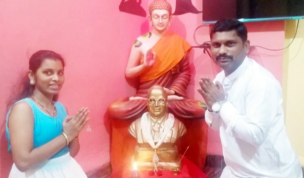 पनवेल : भाजपचे रायगड जिल्हा परिषद प्रतोद तथा अनुसूचित जाती मोर्चाचे सरचिटणीस अमित जाधव यांनी सोशल डिस्टन्सिंग ठेवून डॉ. बाबासाहेब आंबेडकर यांची जयंती परिवारासह साजरी केली.