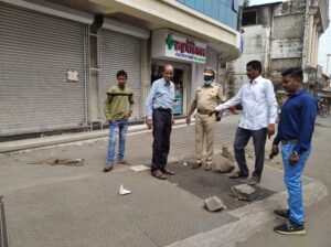 मेहेंदळे वाडा या ठिकाणी विकासकाने टोलेजंग टॉवर उभारला आहे. त्यामुळे येथील रस्ता वाहनचालक व पादचार्यांना धोकादायक ठरत आहे. याबाबत भाजप नेते संजय कोनकर यांनी वेळोवेळी पत्रव्यवहार करत मुख्याधिकार्यांचे लक्ष वेधण्याचा प्रयत्न केला. मात्र त्यावर न.प.प्रशासनाकडून आजपर्यंत कोणतीही कार्यवाही करण्यात आली नाही. त्यामुळे प्रत्यक्ष जागेवर येऊन पाहणी करण्याची विनंती कोनकर यांनी पोलीस निरीक्षक संजय पाटील यांना केली होती. त्यानुसार पोलीस निरीक्षक पाटील सोमवारी या रस्त्याची पाहणी केली असून यासंबंधी मुख्याधिकार्यांजवळ चर्चा करून उपाययोजना करण्यास सांगतो, असे आश्वासन संजय पाटील यांनी दिले आहे.