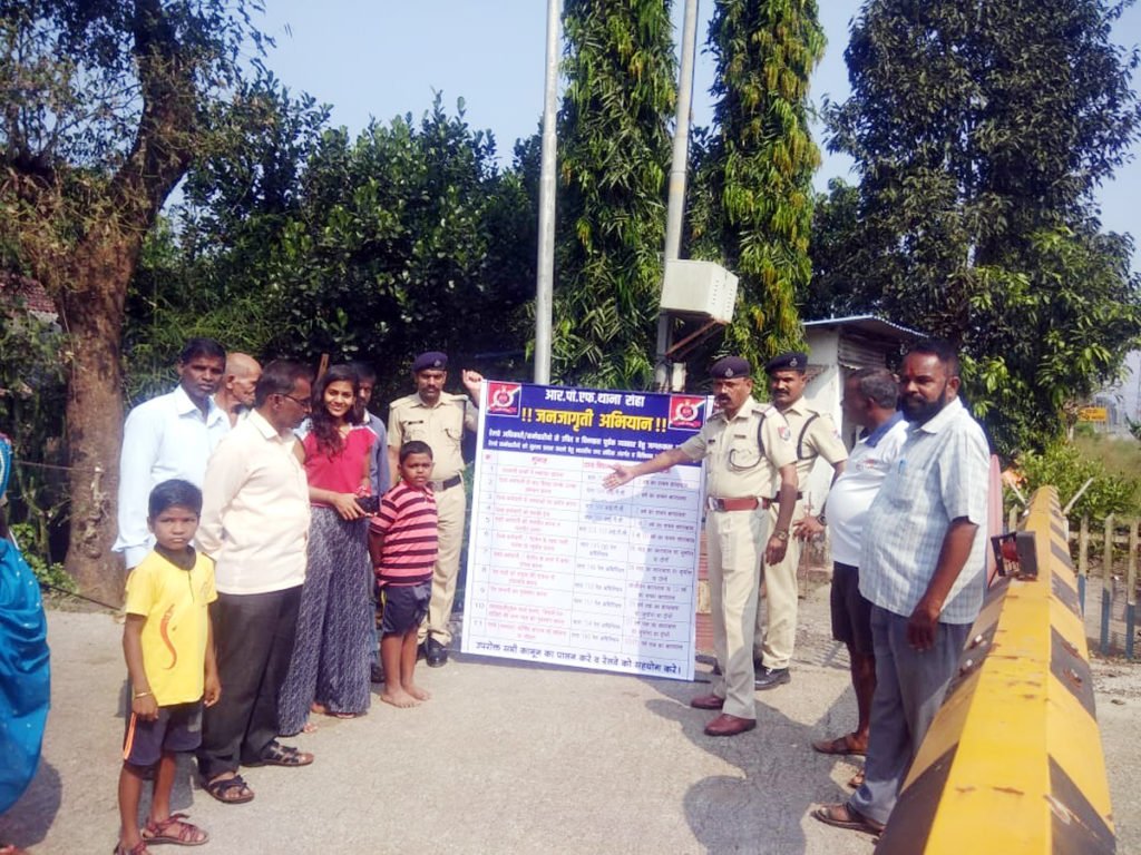 येथील रेल्वे पोलीस ठाण्याच्या वतीने निडी रेल्वे फाटक येथे निरीक्षक सतीश विभुते यांच्या मार्गदर्शनाखाली रेल्वे फाटक सुरक्षा जनजागृती अभियान रबविण्यात आले. रेल्वे फाटक बंद झाल्यानंतर ते लगेचच उघडावे, असे प्रवासी गेटमेनला सांगतात. फाटक उघडले नाही तर गेटमेन व प्रवाशांत बाचाबाची होते. वास्तविक रेल्वेकडून सूचना आल्यानंतरच फाटक बंद अथवा उघडण्यात येते. रेल्वे फाटक उघडण्यासाठी प्रवासी गेटमेनकडे तगादा लावत असतात. हे रेल्वे सुरक्षेच्या विरोधात आहे. त्यामुळे प्रवाशांनी गेटमेनशी हुज्जत घालू नये, असे या जनजागृती अभियानात सांगण्यात आले. रेल्वे फाटक सुरक्षेच्या दृष्टिकोनातून रोहा रेल्वे पोलीस ठाण्याने निडी येथे राबविलेल्या या जनजागृती अभियानाच्या वेळी रेल्वे पोलीस उपनिरीक्षक द्वारकाप्रसाद चौधरी, प्रधान रक्षक अनिल सोनुले, शिवाजी पाटील, धर्मेंद्र कोळी, महासंघाचे रोहा तालुका अध्यक्ष सूर्यकांत वाघमारे, निडी तर्फे अष्टमी ग्रामपंचायत सदस्य परशुराम वाघमारे, काशिनाथ पाटील, अवंतिका पाटील, ज्ञानेश्वर भोईर, नथुराम तांडेल यांच्यासह ग्रामस्थ उपस्थित होते.