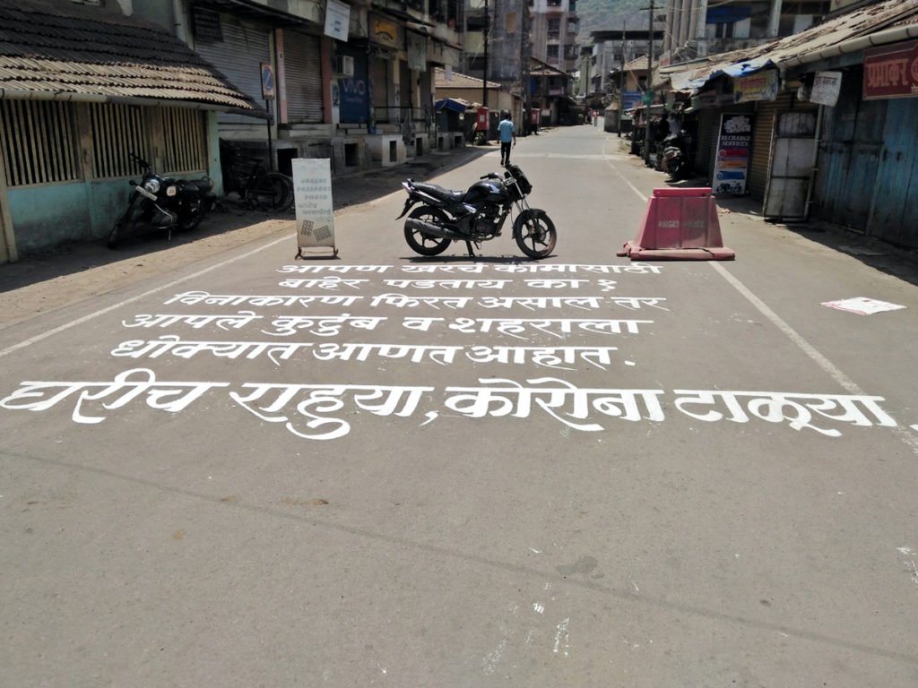 कोरोनाच्या पार्श्वभूमीवर लॉकडाऊन जारी करण्यात आले आहे. अत्यावश्यक सेवांना मात्र लॉकडाऊनमधून वगळण्यात आले आहे, परंतु रोह्यात लॉकडाऊनच्या काळात अत्यावश्यक सेवेतील भाजीपाला व अन्य साहित्य खरेदीसाठी मोठ्या प्रमाणात गर्दी होत असल्याने 10 ते 13 एप्रिल या कालावधीत रोहा अष्टमी नगरपालिका क्षेत्रात स्वयंस्फूर्तीने संपूर्ण लॉकडाऊन घेण्यात आला आहे. या लॉकडाऊनला नागिरकांनी चांगला प्रतिसाद दिला आहे. या कालावधीत रोहा नगरपालिकेने कोरोनाबाबतच्या जनजागृतीसाठी विविध माध्यमांचा वापर केला आहे. त्यानुसार शहराच्या प्रमुख चौकांत रस्त्यांवर संदेश रेखाटण्यात येत आहेत. राम मारुती चौक, तीन बत्ती नाक्यासह अन्य ठिकाणी रस्त्यावर संदेश रेखाटले आहेत. मीच माझा रक्षक, तुम्ही विनाकारण रस्त्यावर फिरून तुमच्या कुटुंबाला व शहराला धोक्यात आणत आहात, घरी राहू, कोरोना टाळू, माझे आरोग्य माझी जबाबदारी, कोरोना हरेल देश जिंकेल, असे जनजागृतीपर संदेश प्रमुख चौकांत रेखाटण्यात आले आहेत. नगरपालिकेच्या या उपक्रमाचे सर्व नागरिकांनी स्वागत केले आहे.