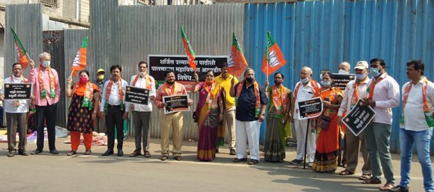 मुंबईचे माजी पोलीस आयुक्त परमबीर सिंह यांनी महाराष्ट्राचे गृहमंत्री अनिल देशमुख यांच्यावर भ्रष्टाचाराचे गंभीर आरोप केले आहेत. याबाबत त्यांनी मुख्यमंत्री उद्धव ठाकरे यांना पत्र लिहिले आहे. त्यात माजी आयुक्तांनी अनिल देशमुख यांच्यावर दरमहा 100 कोटींची मागणी केल्याचा आरोप केला आहे. एवढा मोठा पुरावा मिळूनही त्यांच्यावर कारवाई होत नाही. राज्य सरकारने भ्रष्ट व मनमानी गृहमंत्र्यांचा त्वरित राजीनामा घ्यावा, या मागणीसाठी रविवारी (दि. 21) भारतीय जनता पक्षाने कर्जत येथे निषेध आंदोलन केले. राज्य सरकारने राज्याचे गृहमंत्री अनिल देशमुख यांचा राजीनामा घ्यावा, या मागणीसाठी रविवारी सकाळी 10 वाजता टिळक चौक येथे निषेध आंदोलन करण्यात आले. या वेळी जिल्हा सरचिटणीस दीपक बेहेरे, उपनगराध्यक्ष अशोक ओसवाल, किसान मोर्चा कोकण विभाग संयोजक सुनील गोगटे, तालुका सरचिटणीस राजेश भगत, संजय कराळे, शहर अध्यक्ष बळवंत घुमरे, महिला मोर्चा जिल्हा चिटणीस बिनीता घुमरे, नगरसेविका स्वामिनी मांजरे, विशाखा जिंनगरे, महिला मोर्चा अध्यक्ष स्नेहा गोगटे, जिल्हा उद्योग आघाडी संयोजक मंदार मेहंदळे यांच्या नेतृत्वाखाली हे आंदोलन करून निषेध करण्यात आला. या वेळी सोशल मीडिया जिल्हा सहसंयोजक सूर्यकांत गुप्ता, कोकण सोशल महिला प्रमुख गायत्री परांजपे, तालुका संयोजक पंढरीनाथ हजारे व सहसंयोजक मिलिंद खंडागळे, प्रज्ञा प्रकोष्ठ तालुका संयोजक समीर सोहनी, अभिनय खांगटे, मारुती जगताप, स्वप्ना सोहोनी, मनीषा अथनिकर, राजेंद्र जाधव, विजय जिनगिरे, विजय कुलकर्णी, वसंत महाडिक, नवीन देशमुख, संदीप म्हसकर, दशरथ पोसाटे, प्रवीण दळवी, सर्वेश गोगटे, बिलाल आढाळ आदी भाजप कार्यकर्ते मोठ्या संख्येने उपस्थित होते.