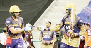 अबुधाबी ः वृत्तसंस्था फिरकीपटू वरुण चक्रवर्ती (3/13), आंद्रे रसेल (3/9) यांनी केलेली प्रभावी गोलंदाजी आणि शुभमन गिल (48 धावा), पदार्पणवीर व्यंकटेश अय्यर (नाबाद 41) यांनी केलेल्या दमदार फलंदाजीच्या बळावर कोलकाता नाइट रायडर्सने इंडियन प्रीमियर लीग (आयपीएल) ट्वेन्टी-20 क्रिकेटमध्ये सोमवारी झालेल्या सामन्यात रॉयल चॅलेंजर्स बंगळुरूचा नऊ गडी आणि 60 चेंडू राखून …