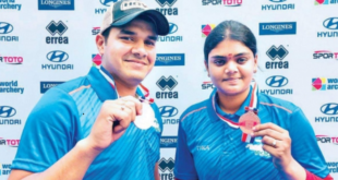 आशियाई तिरंदाजी स्पर्धेत चमकदार कामगिरी बँकॉक : वृत्तसंस्था अभिषेक वर्मा आणि ज्योती सुरेखा व्हेन्नम यांनी आशियाई तिरंदाजी अजिंक्यपद स्पर्धेत सुवर्णपदक जिंकले. त्यामुळे भारताच्या खात्यावर सातवे पदक जमा झाले. अभिषेक-ज्योती जोडीने कंपाऊंड मिश्र दुहेरी प्रकारातील अंतिम सामन्यात चायनीज तैपेईच्या यि-सुआन चेन आणि चेह-लूह चेन जोडीचा 158-151 असा पराभव केला. भारताने या …