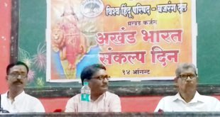 कडाव : प्रतिनिधी विश्व हिंदू परिषद व बजरंग दलाच्या वतीने कर्जतमधील अभिनव ज्ञान मंदिर शाळेच्या सभागृहात बुधवारी अखंड भारत संकल्प दिनाच्या कार्यक्रमाचे आयोजन करण्यात आले होते. त्यात संघाचे जिल्हा बौद्धिक प्रमुख विजय वेदपाठक यांनी अखंड भारत या विषयावर विस्तीर्ण व सविस्तर मार्गदर्शन केले. कार्यक्रमाची सुरुवात भारतमाता पूजनाने झाली. विश्व हिंदू …