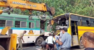 रेवदंडा, अलिबाग : प्रतिनिधी अलिबाग-रेवदंडा मार्गावर बागमळा येथे बुधवारी (दि. 13) सकाळी जेएसडब्ल्यू कंपनीची बस आणि एसटी बस यांच्यात समोरासमोर ठोकर झाली. या अपघातात दोन्ही बसचालकांसह एकूण 16 जण जखमी झाले आहेत. जखमींना अलिबाग येथील शासकीय रुग्णालयात दाखल करण्यात आले आहे. मुरूड आगाराची एसटी बस रेवदंडामार्गे मुंबईकडे निघाली होती. ही …