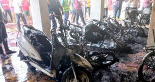 खालापूर, खोपोली : प्रतिनिधी खोपोली चिन्मयनगर परिसरातील मालती हेरिटेज या इमारतीच्या पार्किंगमध्ये उभ्या असलेल्या दुचाकींना मंगळवारी (दि. 14) सकाळी 9.30च्या सुमारास आग लागल्याची घटना घडली. यात सहा दुचाकी व दोन सायकली जळून खाक झाल्या आग लागल्याचे वृत्त समजताच स्थानिकांनी घटनास्थळी धाव घेत पार्किंगमध्ये असलेल्या इतर सायकल्स व दुचाकींना वाचवण्यात यश …