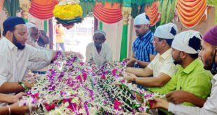 पनवेल : रामप्रहर वृत्त राजे प्रतिष्ठान कामगार सेनेतर्फे माजी खासदार लोकनेते रामशेठ ठाकूर यांच्या 70 व्या वाढदिवसानिमित्त पनवेल शहरातील हजरत ख्वॉजा पीर करमअली शाह चिश्ती रहमतुल्ला आलैह बाबांच्या दर्ग्यात 70 फुट फुलांची चादर अर्पण करण्यात आली. तसेच नवसाला पावणारा म्हणूनच प्रसिद्ध असणार्या आणि सर्व जातीधर्मातील भाविकांचे श्रद्धास्थान असणार्या या दर्ग्यात …